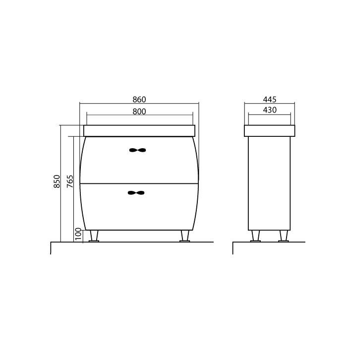 44,5х86х85 см